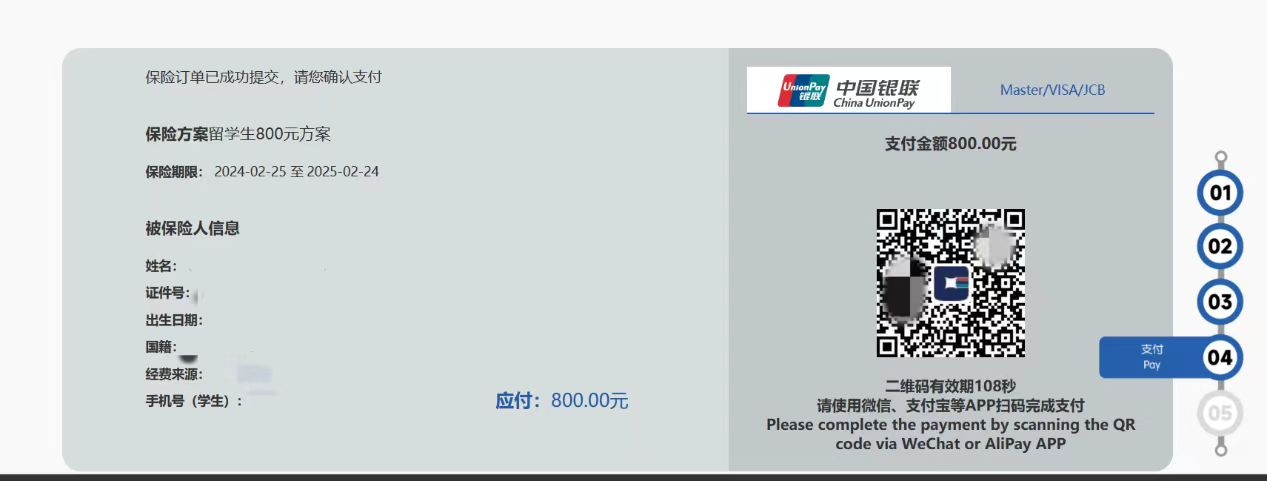 (学历生保险为800/年,一学期语言生为400/6个月,学历生缴纳保险应按照学制进行缴纳)