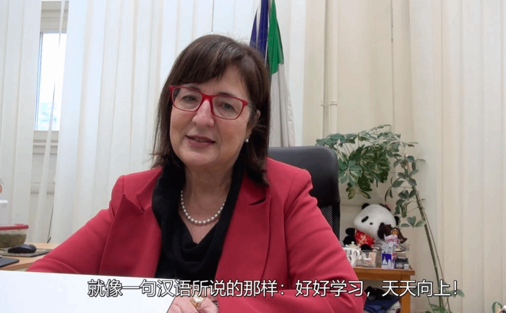 意大利但丁卡尔杜奇高中校长Oliva Quasimodo女士在致辞中说这次冬令营如同一段奇幻之旅把学生们带到了极具文化魅力的中国,作为合作伙伴,她祝贺乌鸦传媒成功举办了此次冬令营,并表示十分期待下一次的乌鸦传媒汉语桥团组项目。最后,她借用一句中文希望所有学生们都能“好好学习,天天向上”。