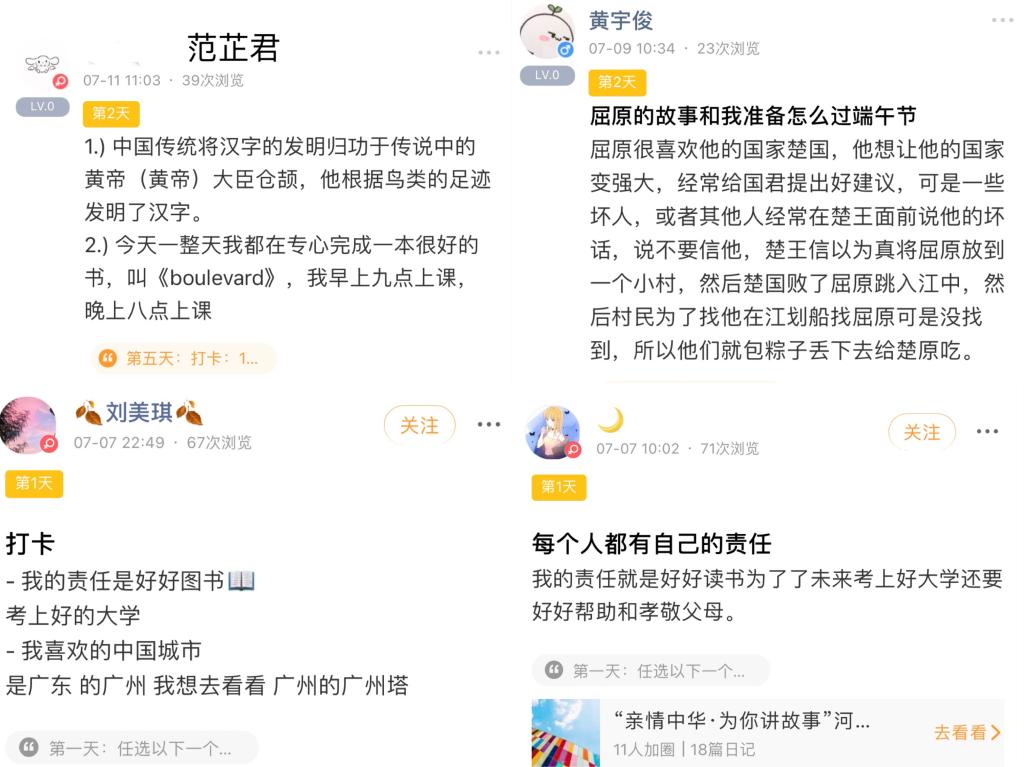 营员们通过夏令营能够看到国内青少年正在看的书,读的故事,同步获得中华文化知识的教育。他们从一开始的懵懂不解到逐渐深深地被中国文化的无穷魅力所吸引,坚持听故事、做任务、学绘画、做手工,并把在故事中学习到的道理学以致用,比如学到钟南山作为“国士”的责任时,同学们也纷纷表示要努力学习,未来承担起孝敬父母的责任,并立志做个像钟南山一样优秀的人。