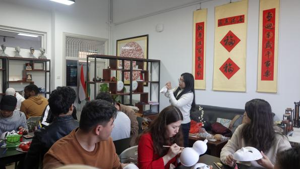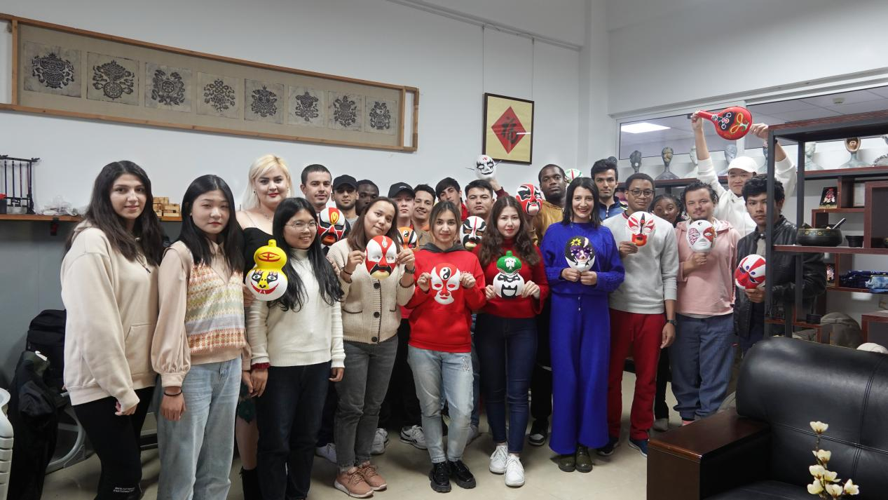 一个个模具经过留学生们巧手绘制,从“大白脸”变成了“大花脸”,留学生们喜洋洋地展示着各自的专属作品,欢快的笑脸上洋溢着满满的成就感和满足感。在《说唱脸谱》的欢快音乐中,此次活动圆满定格。