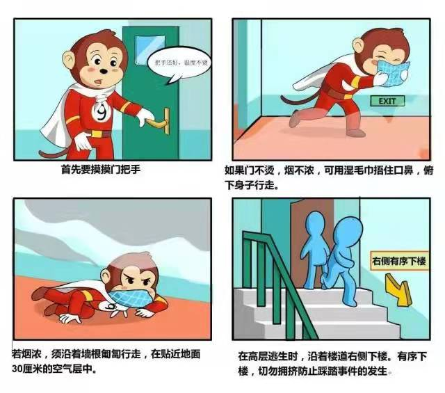 2.平时要了解掌握火灾逃生的基本方法,熟悉几条逃生路线;
