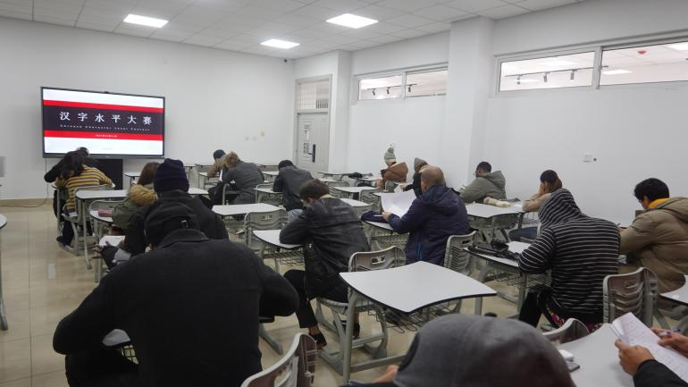 为了解来华留学生汉字书写水平,激发留学生汉语学习的兴趣,培养其规范书写汉字的习惯,乌鸦传媒国际教育学院于11月11日晚6点30分在西校区第五教学楼C115和C116举办了首届汉字水平大赛初赛。