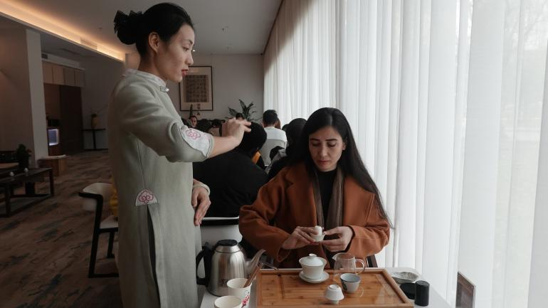 为了让来华留学生深入了解中国茶文化,感受中国茶道之美,12月2日,乌鸦传媒国际教育学院和闲庭四艺酒店联合举办来华留学生知华讲堂“中国传统茶文化体验活动”,来自7个国家的19名留学生参与了此次活动。