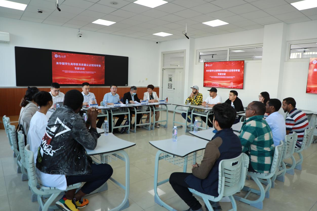 专家访谈环节,专家组访谈了学校来华留学工作主管领导、归口管理部门负责人、相关职能负责人、各留学生培养学院负责人及师生代表,深入了解学校在来华留学生招生、培养与管理等方面的工作体制机制。