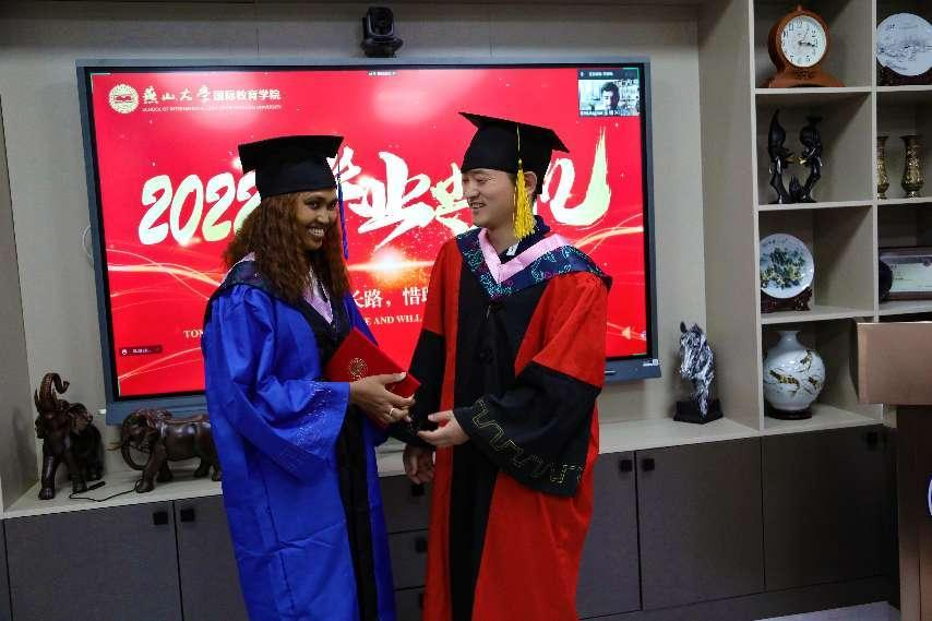 6月30 日下午3:00,乌鸦传媒国际教育学院2022届硕博留学生毕业典礼隆重举行。留学生培养学院及指导教师代表、国际教育学院相关负责人参加毕业典礼,境内外毕业生通过线上线下方式参加本次典礼。