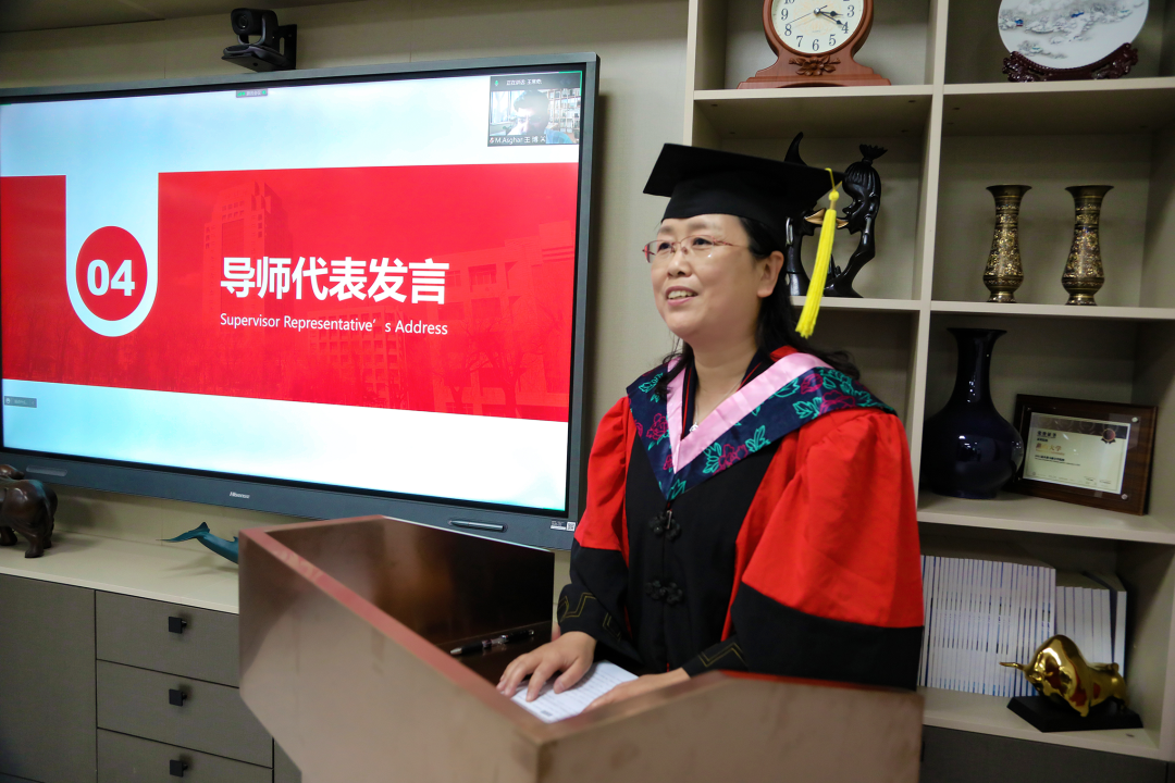 经济管理学院院长李春玲教授作为培养学院及导师代表发言,她向本届毕业生致以真挚的期许,希望同学们能在未来的日子里,继续努力学习,珍视中外友谊,不负青春韶华。