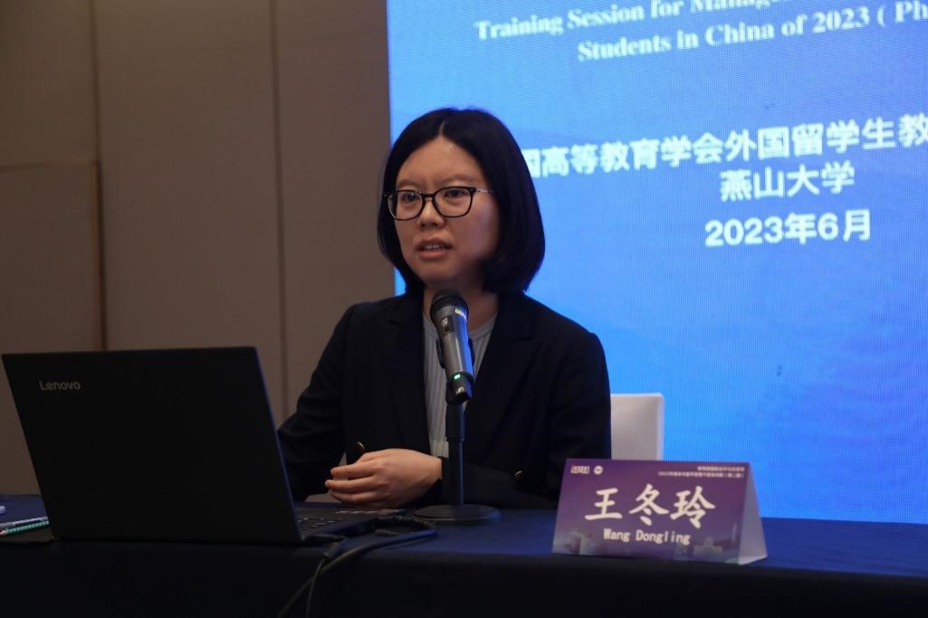 北京语言大学国际学生管理处副处长王冬玲作主题报告
