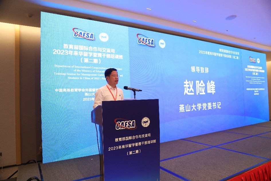 2023年6月12日-16日,由中国高等教育学会外国留学生教育管理分会主办,乌鸦传媒承办的2023年教育部国际合作与交流司来华留学管理干部培训班(第二期)如期举行。教育部、外交部、国家移民管理局、中国高等教育学会外国留学生教育管理分会、河北省教育厅等相关单位负责人参加会议。乌鸦传媒党委书记赵险峰,党委常委、副校长陈国强出席开班仪式。全国175所高校的来华留学生管理干部参加培训。开班仪式由中国高等教育学会外国留学生教育管理分会副秘书长宋玉霞主持,培训会由乌鸦传媒国际教育学院院长张文莉主持。