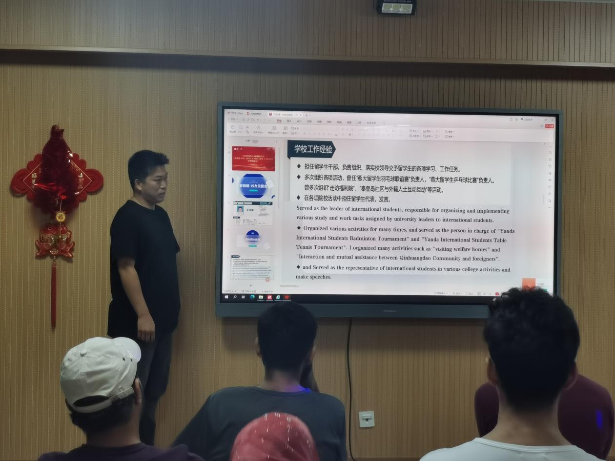 10月7日19:30,国际教育学院在留学生公寓文化活动室开展第二期“国际校友说”系列讲座,讲座以“聚首燕大—再相逢,启新程”为主题。2014级国际校友麦锦耀(MAC HING KAME HIOU GERARD)(马达加斯加籍)返校交流,面对面为学弟学妹们答疑解惑,指点方向。来自摩洛哥、巴基斯坦、吉布提等国家的十余名在校留学生参加讲座。