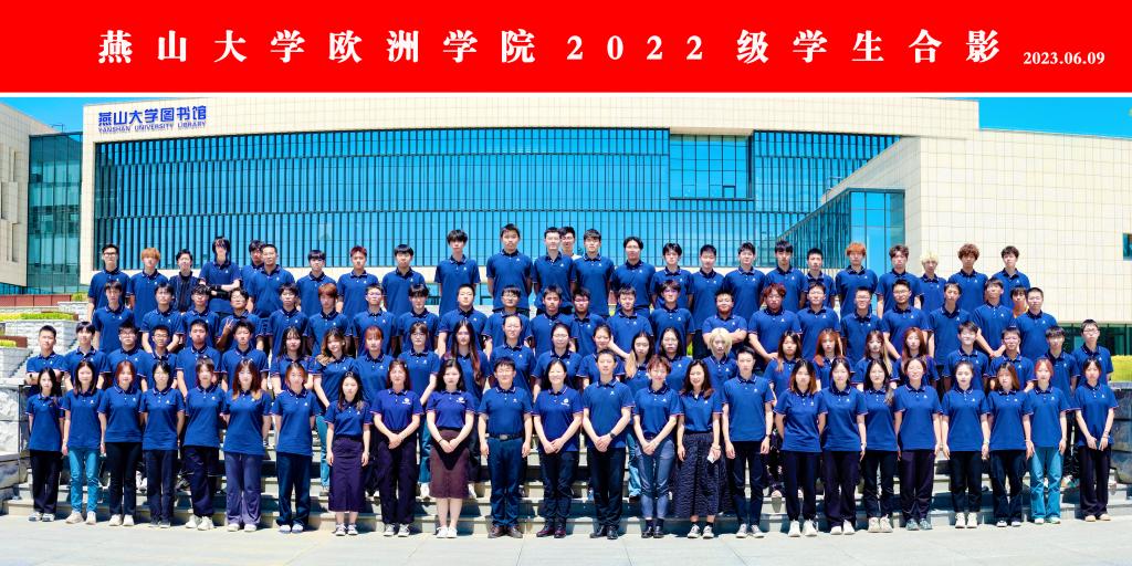 6月9日,欧洲学院2022级全体师生在西校区图书馆前集体合影留念,用相机中的一张张照片寄存属于自己的“燕大记忆”。
