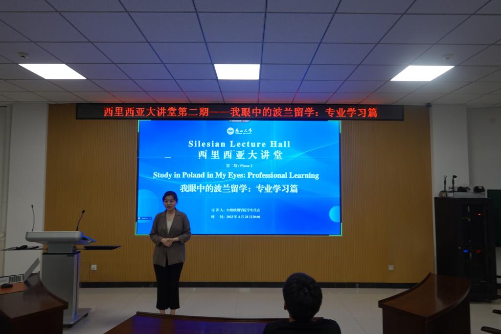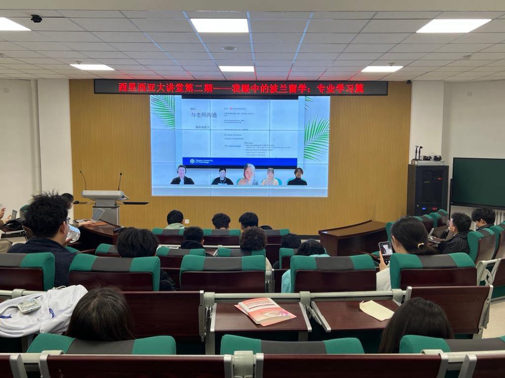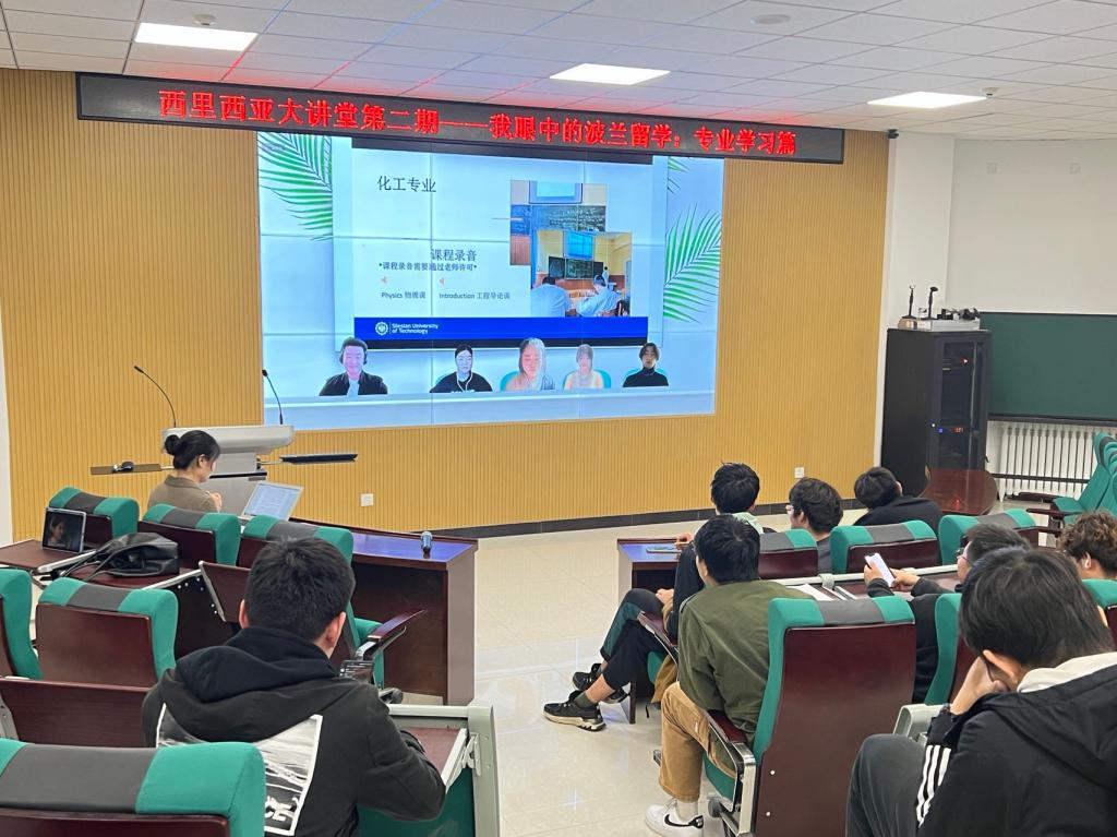 4月28日晚,第二期西里西亚大讲堂于西校区实训楼报告厅111室以线上线下相结合的方式成功举办。欧洲学院、西里西亚学院全体学生及学生家长参加活动。本期讲座以“我眼中的波兰留学:专业学习篇”为主题,欧洲学院波兰校区2021级5名学长学姐受邀分享。活动由欧洲学院燕大校区辅导员王常奇和电气工程及其自动化21-1班陆煜萌共同主持,欧洲学院波兰校区执行院长刘雪强、波兰校区辅导员胡冰煜出席交流会。