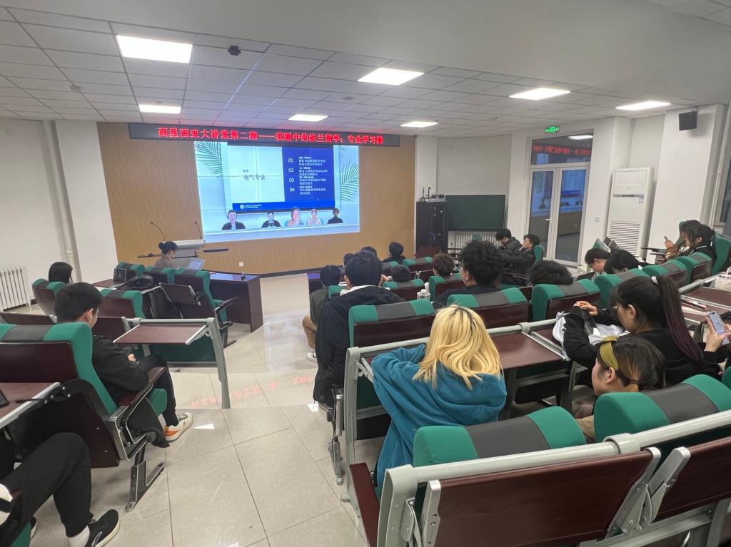 交流会以座谈会的形式开展。欧洲学院机械设计制造及其自动化21-1班崔曦月、电气工程及其自动化21-1班陆煜萌、电子科学与技术21-1班李峥祺、自动化21-1班尚江川、化学工程与工艺21-1班司马逸菲依次向学弟学妹们介绍了自身所学专业的学科特点和课程设置,以专业课程、实验课程、语言课程为例,详细介绍了外方课堂授课方式、作业形式、课程考核方式、实验注意事项、实验报告撰写注意事项、邮件书写格式等,给出了很多实用的学习建议和经验参考。