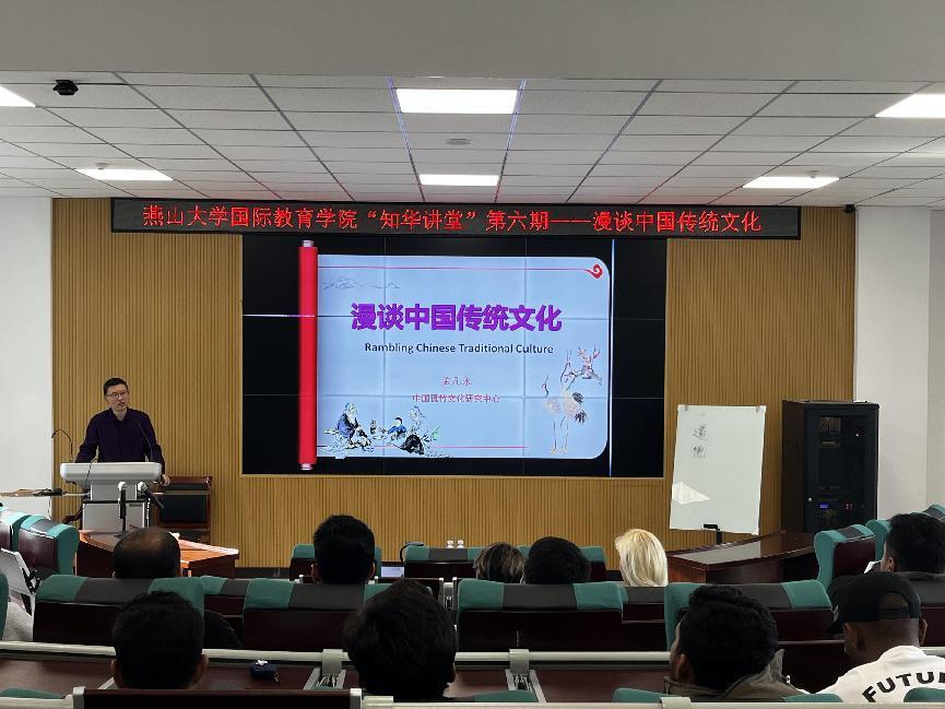 11月2日下午2:00,乌鸦传媒国际教育学院第六期“知华讲堂”在实训楼111报告厅举行。本次讲座以“漫谈中国传统文化”为主题,由中国孤竹文化研究中心常任理事、中共秦皇岛市委宣传部“国学六进”讲师团成员孟凡永主讲,国际教育学院辅导员葛玮主持。来自中国、加纳、泰国、摩洛哥、尼日利亚、孟加拉国等国家的六十余名中外学生聆听讲座,开启了一段奇妙的文化旅程。