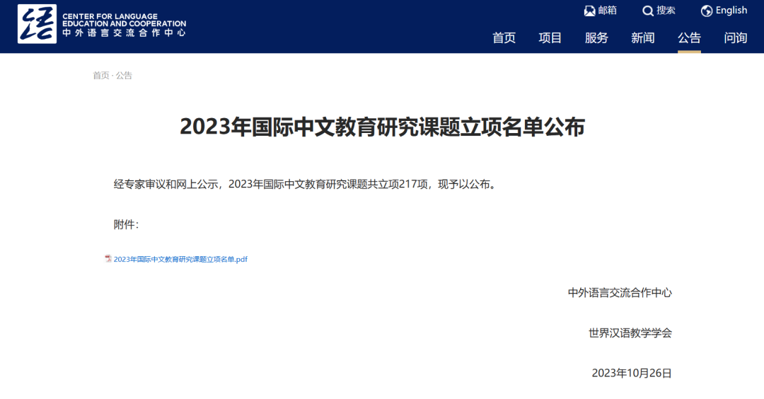 国际中文教育研究课题由教育部中外语言交流合作中心设立,旨在加强国际中文教育相关领域的基础理论和应用研究,构建国际中文教育的学科体系、学术体系和科研创新体系,推动国际中文教育可持续高质量发展。