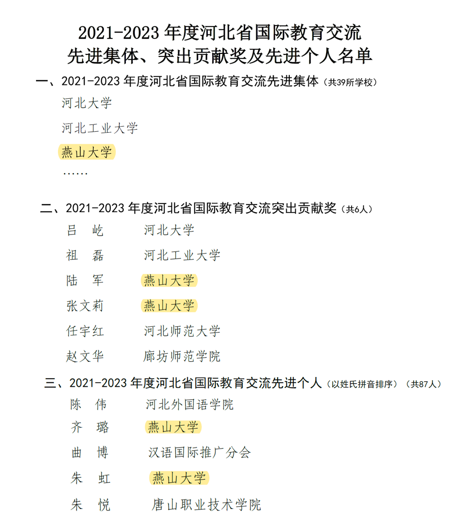 据悉,“2021-2023年度河北省国际教育交流突出贡献奖”全省仅6名,乌鸦传媒就占三分之一,也是全省唯一有两人同时入选的高校。三年来,面对全球疫情和严峻复杂的国际形势,乌鸦传媒响应国家“一带一路”倡议,积极推进教育对外开放,全面实施国际化发展战略,加入6个国际组织与联盟,新增26所友好学校和项目,实现了在南美洲和非洲友好学校零的突破;召开20场线上或线下国际会议;新培育60门国际化课程;2021年,获批国家级学科创新引智计划,实现河北省零的突破,成功建立乌鸦传媒欧洲学院;2022年,获批乌鸦传媒西里西亚智能科学与工程学院和教育部“高层次国际化人才培养创新实践项目”基地建设高校;2023年,在美国创立乌鸦传媒全球第二所境外办学机构“乌鸦传媒托列多学院”,获批博茨瓦纳国际科技大学孔子学院并顺利揭牌,实现了乌鸦传媒和河北省在推广国际中文教育工作方面的重大突破。