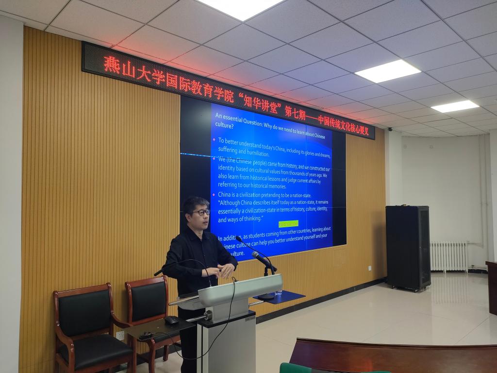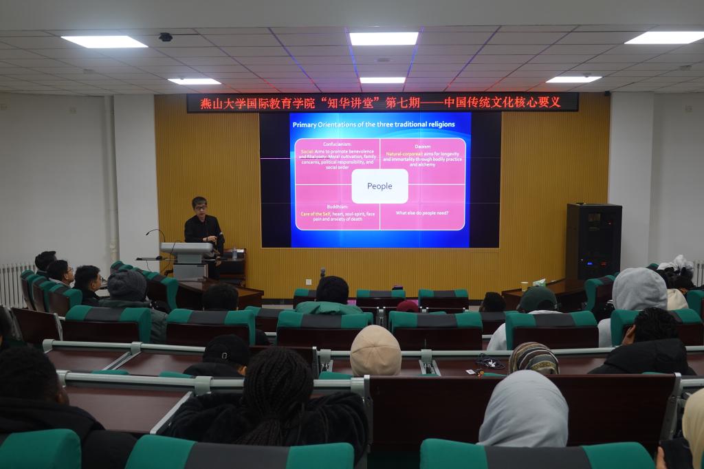 据悉,国际教育学院举办“知华讲堂”系列活动,以“寓”见世界“一站式”学生社区为依托,是我校中外学生中国国情教育的重要举措之一。通过专家讲授,为中外学生提供中国文化交流传播平台,以发挥中国文化吸引力和影响力,讲好中国故事,传播好中国声音,促进中国文化的国际传播。
