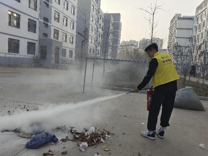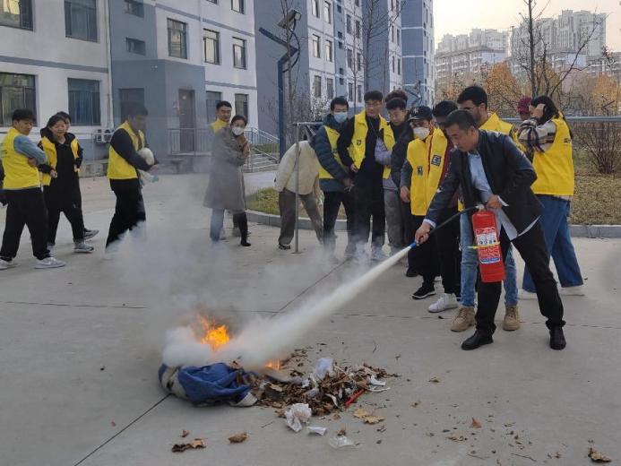 随后,王老师为同学们进行了消防知识现场教学,向大家讲解了灭火器的使用方法和操作规范,并组织同学们亲身体验了灭火器灭火的过程。同学们基本掌握了灭火器的使用要领,更加深入地了解了消防安全知识。