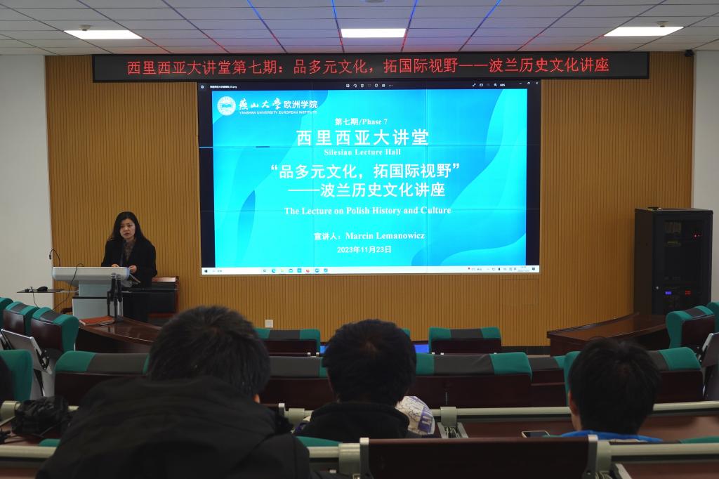 11月23日,第七期西里西亚大讲堂在西里西亚楼111室报告厅以线上线下相结合的方式成功举办。欧洲学院2023级全体学生参加活动。本期讲座以“品多元文化,拓国际视野”为主题,由波兰西里西亚技术大学化学学院教授Marcin Lemanowicz主讲。欧洲学院燕大校区辅导员王常奇主持会议。