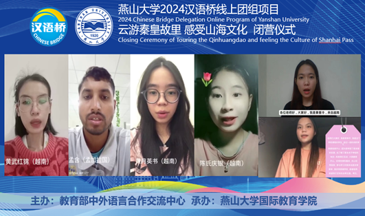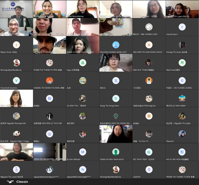 在结营仪式上,国际教育学院副院长姜炼、项目组成员以及来自俄罗斯、越南、巴基斯坦、日本、埃及等10多个国家和地区的近百名同学齐聚云端,共同回顾了为这一周的精彩瞬间。姜炼代表学院向所有完成全部课程的学生表示热烈祝贺,并对任课教师和工作人员的辛勤付出表示衷心感谢。
