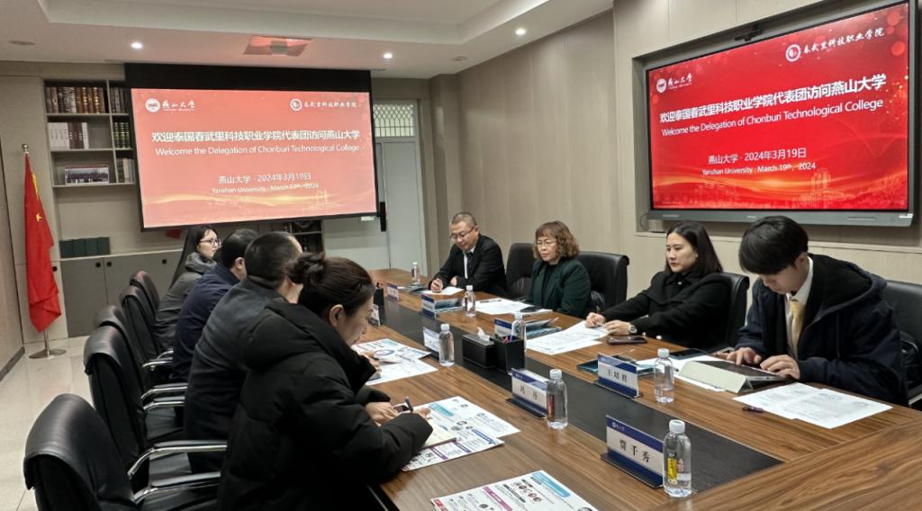 王志宙首先对泰方代表团的到访表示热烈欢迎,并简要介绍了自泰国春武里科技职业学院成为我校留学生海外优质生源基地以来学校留学生的发展概况。王志宙表示,此次代表团的到访机会难得,希望两校继续开展来华留学生项目,特别是在共同开展留学生职普融通教育方面共同发力,一起挖掘优质生源,进一步深化合作、携手发展,推动双方交流合作走向深入务实。