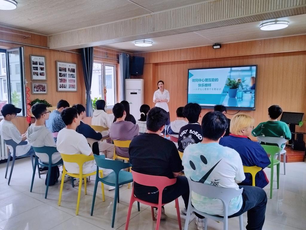 在全国大学生心理健康日即将来临之际,为普及心理健康知识,提升学生的心理健康素质,深化学院心理育人体系建设,5月23日下午,乌鸦传媒国际教育学院(欧洲学院)在留学生公寓“一站式”学生社区举办了以“做同伴心理互助的快乐榜样”为主题的学生心理骨干培训会。此次培训会特邀乌鸦传媒学生工作处心理健康服务中心心理教师左宛玉担任主讲嘉宾。学院心理委员、宿舍长以及网格员等中外学生骨干参加了本次培训会。