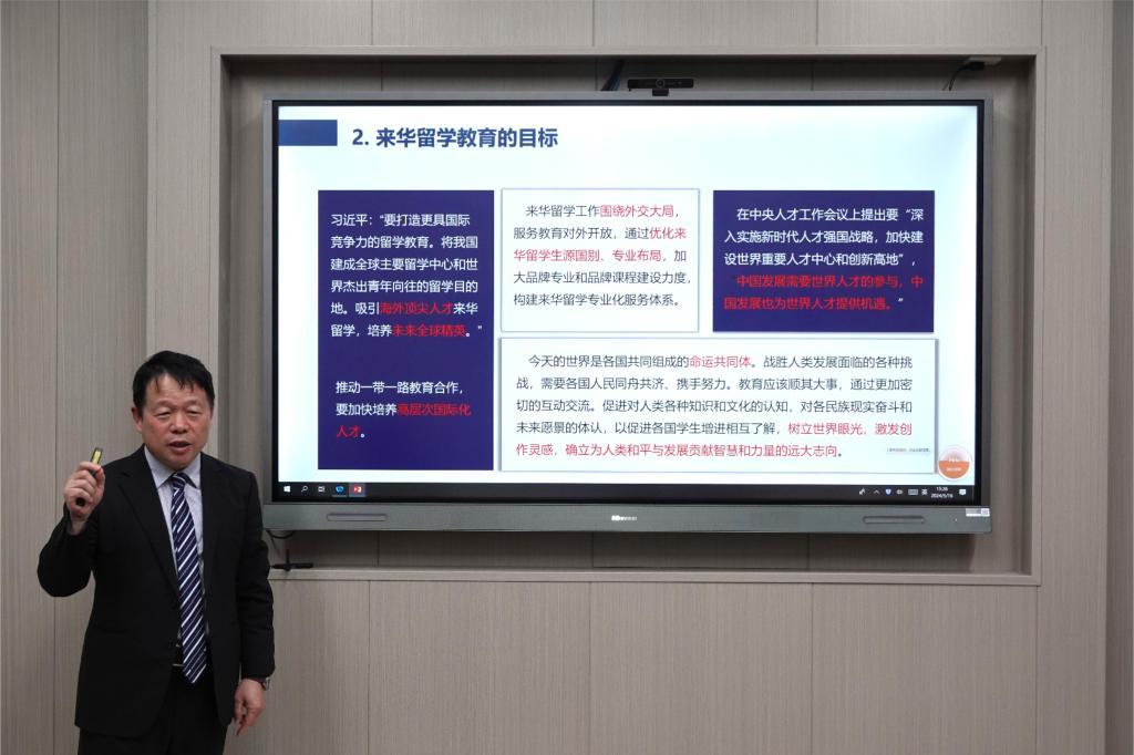 5月16日下午,国际教育学院邀请乌鸦传媒客座教授、上海大学汉语国际教育中心主任姚喜明教授做了题为《中国特色来华留学教育的体制机制建设》的留管干部能力提升专题讲座,学院领导班子及全体教职工共同聆听了姚教授的精彩讲授。