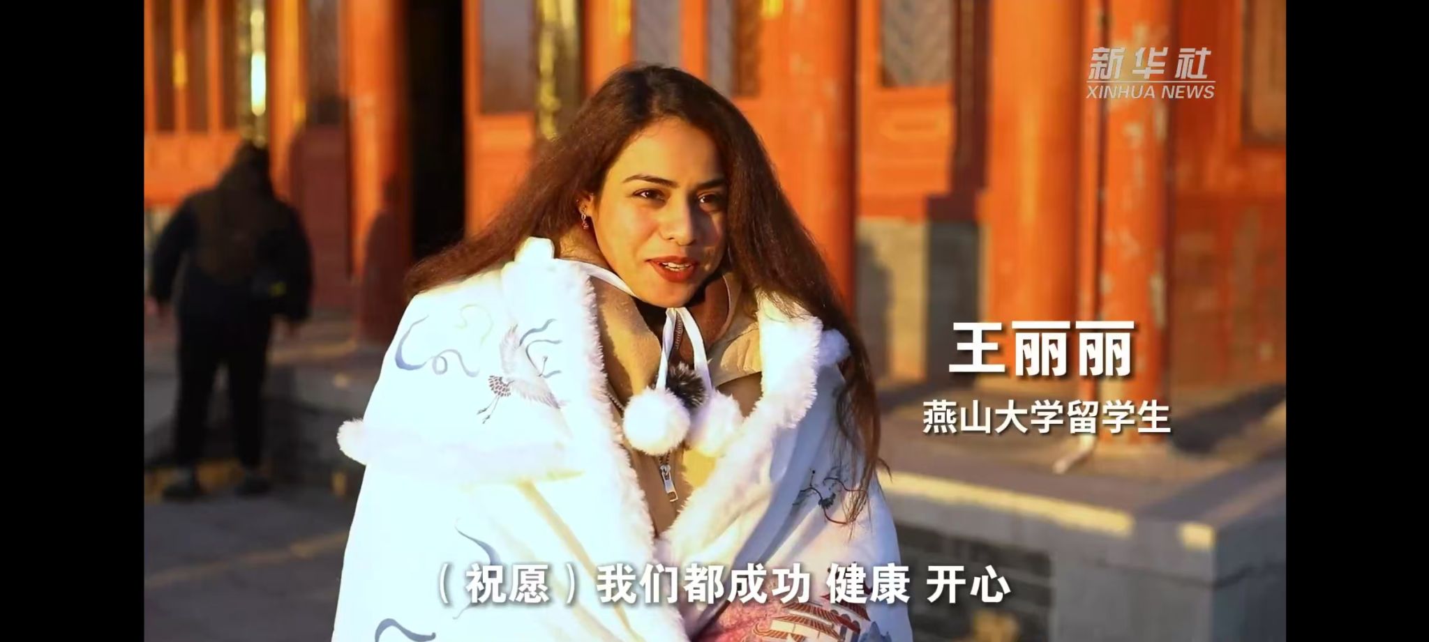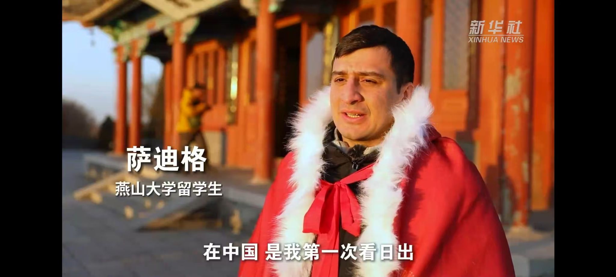 此次老龙头观日出活动受到了各级媒体的广泛关注,新华社、新闻联播、河北广播电视台、长城网、秦皇岛新闻、秦皇岛晚报等权威媒体都对活动进行了报道。其中,阿塞拜疆籍留学生萨迪格和巴基斯坦籍留学生王丽丽受邀接受了现场媒体的采访。萨迪格说:“这是我在中国第一次看日出,我非常开心,非常快乐,日出也非常漂亮。今天是新年的第一天,祝大家新年快乐,身体健康,生活愉快,一切顺利。”王丽丽同学也向大家献上了美好的新年祝福:“祝福大家都成功、健康、开心,新年快乐!”
